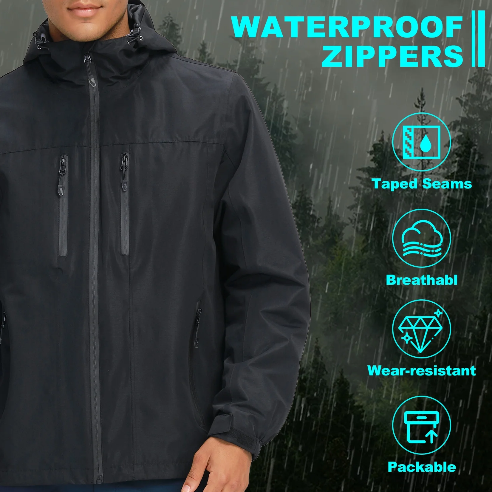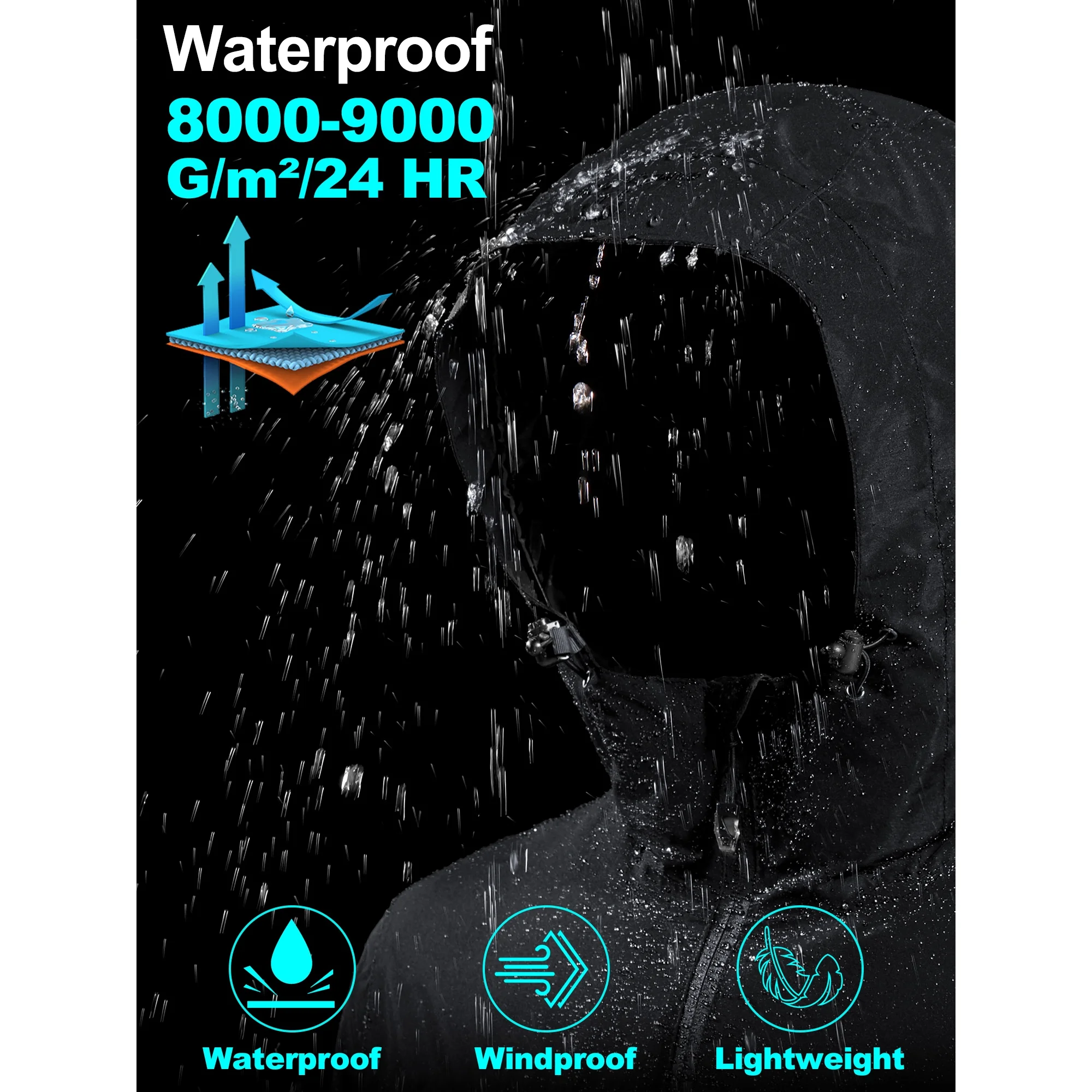 Men's waterproof raincoat has good waterproof protection to keep you dry all day on rainy days. The lightweight hiking jacket's professionally waterproof coated shell allows water to flow away from the surface without penetrating inside, keeping you completely dry even in a downpour. The drawstrings and hood of the men's waterproof jacket offer better facial protection. Outdoor windbreaker jacket with multiple pockets, the men's rain jacket can be used as a raincoat, windshell and raincoat in autumn or spring, or as a snow jacket with a thermal lining in winter.